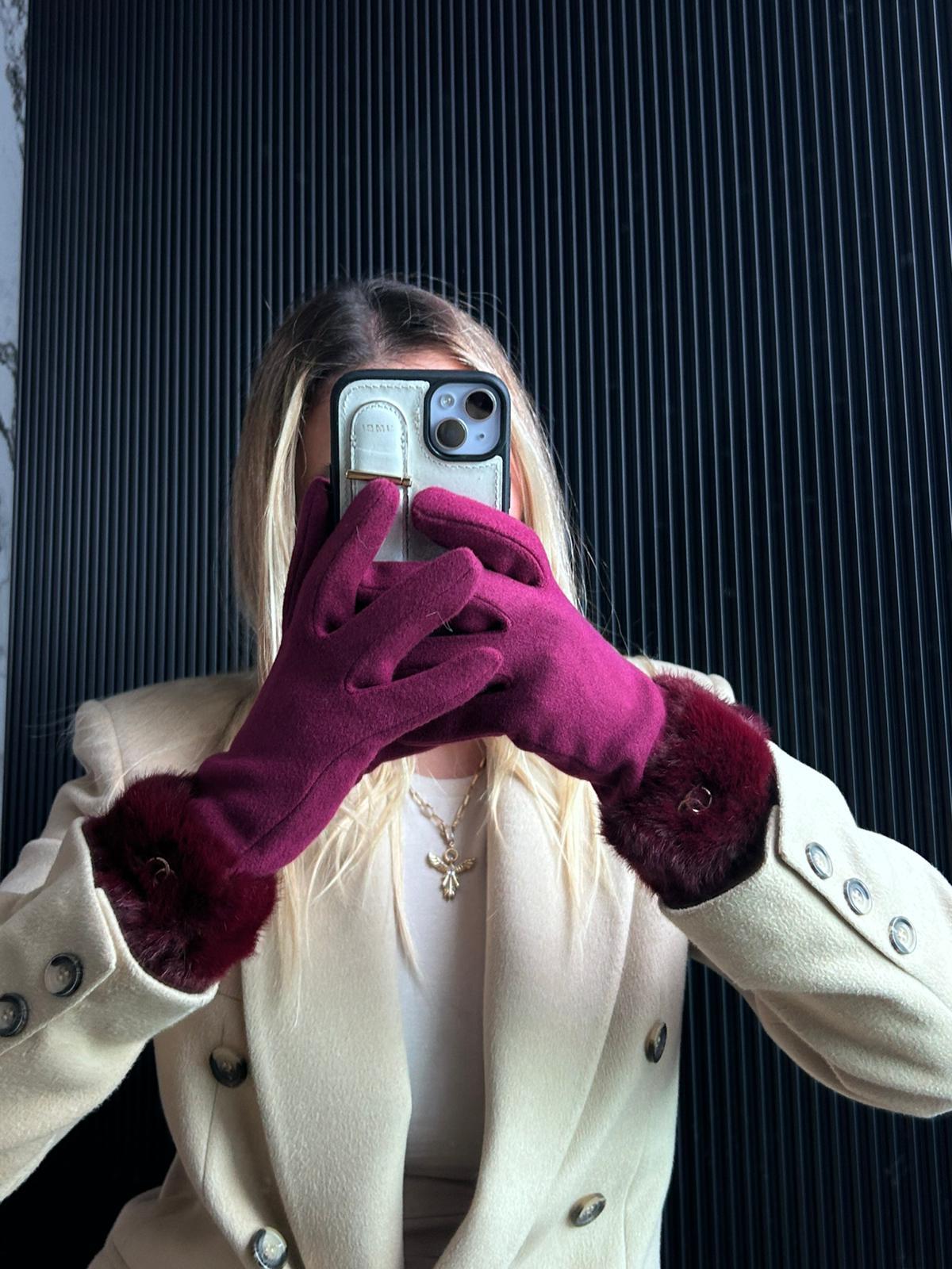 JF Bileği Kürklü Eldiven - Bordo