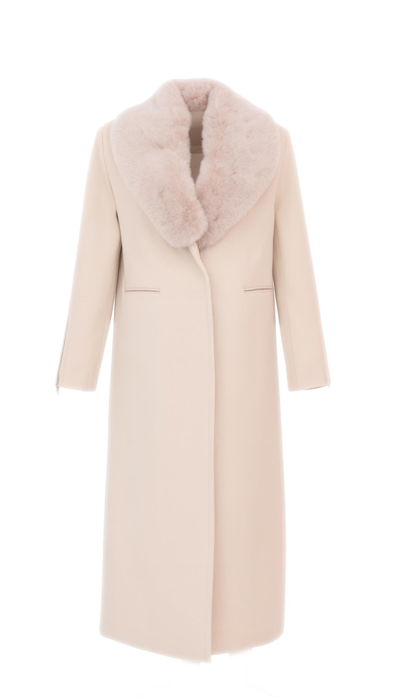 SANDRA Yakası Kürklü Kaşe Kaban - Bej
