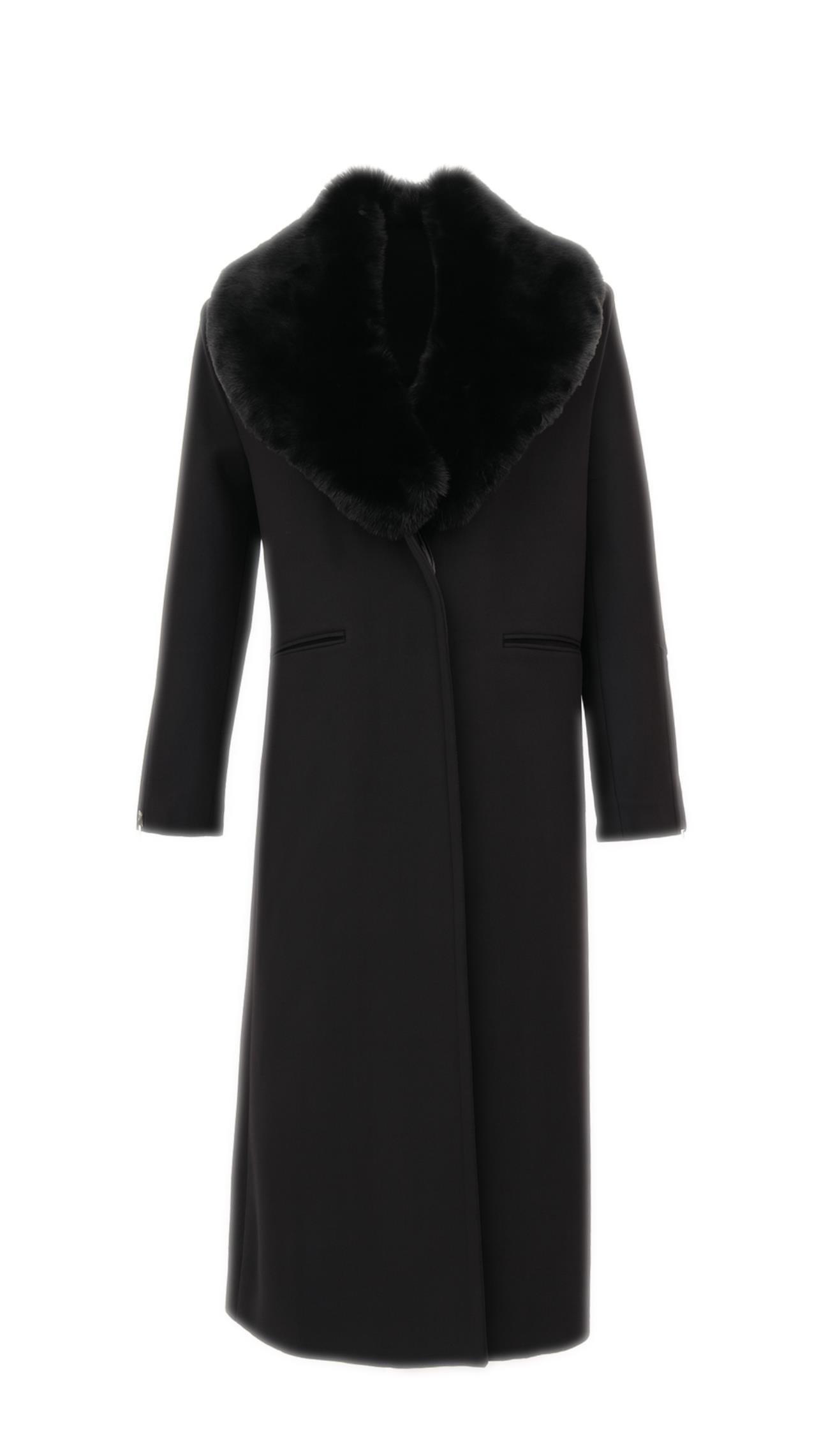 SANDRA Yakası Kürklü Kaşe Kaban - Siyah